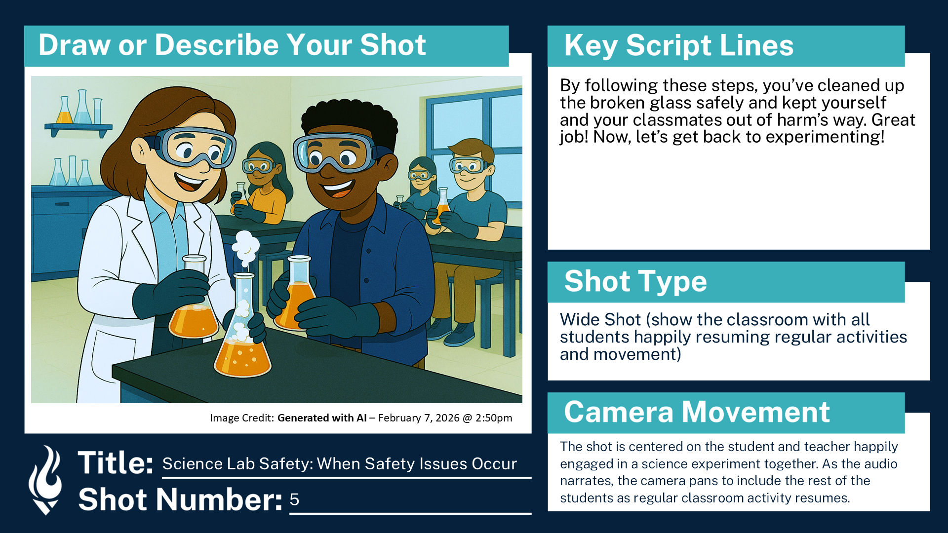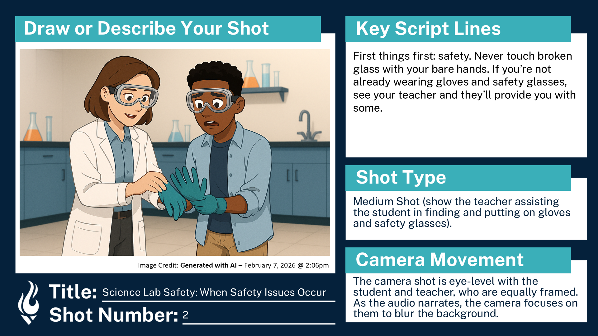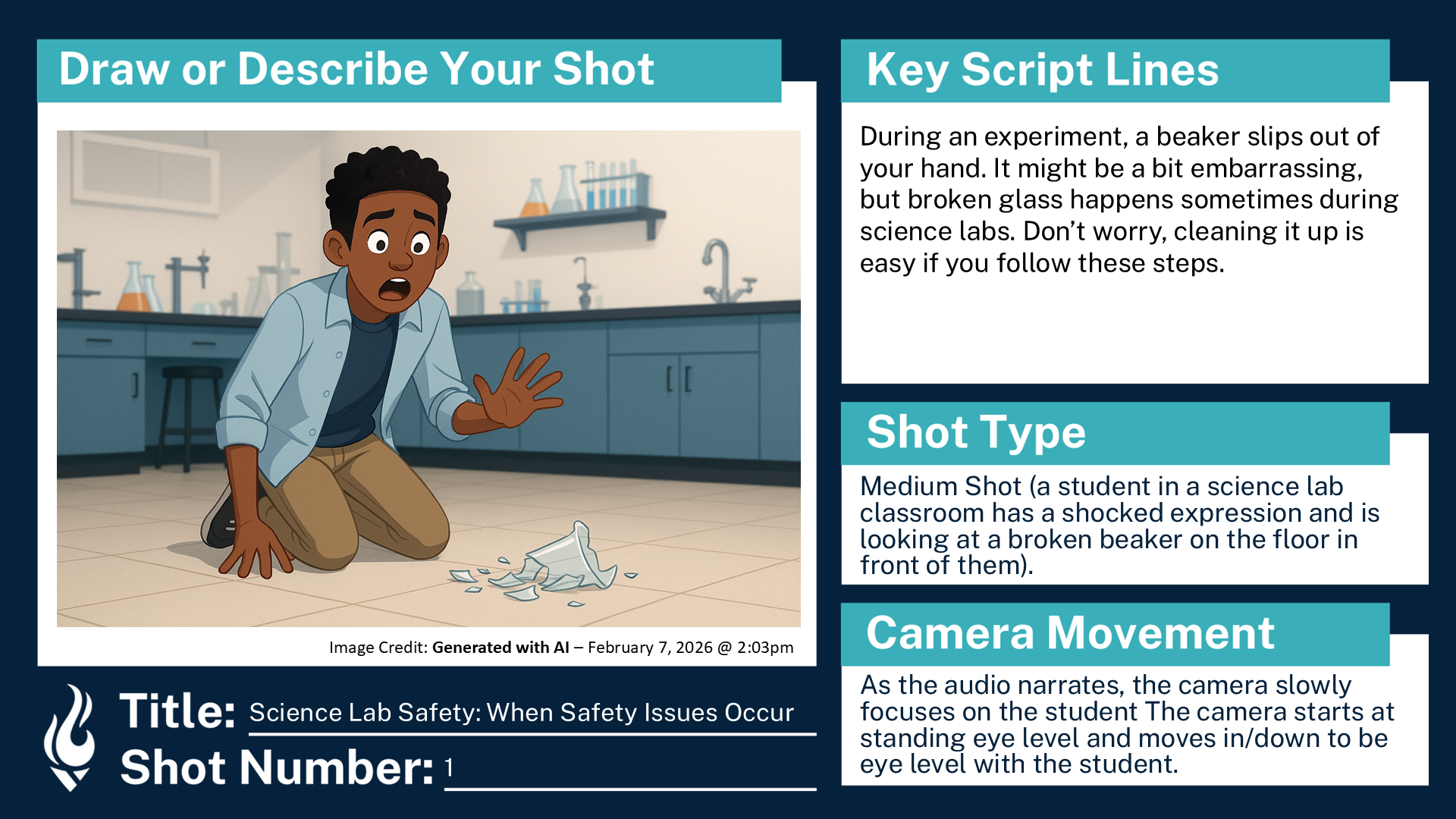 Storyboard for a hypothetical ninth grade course, “Educational Science Lab Safety”