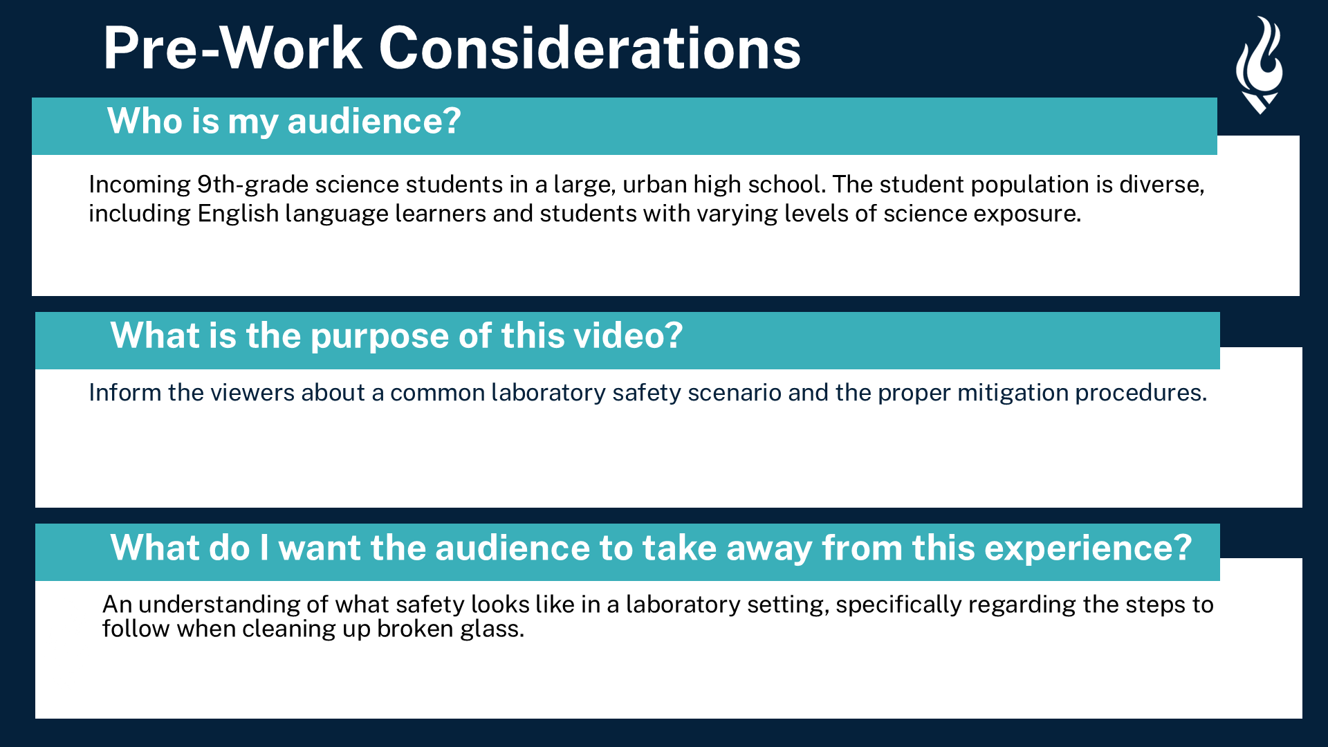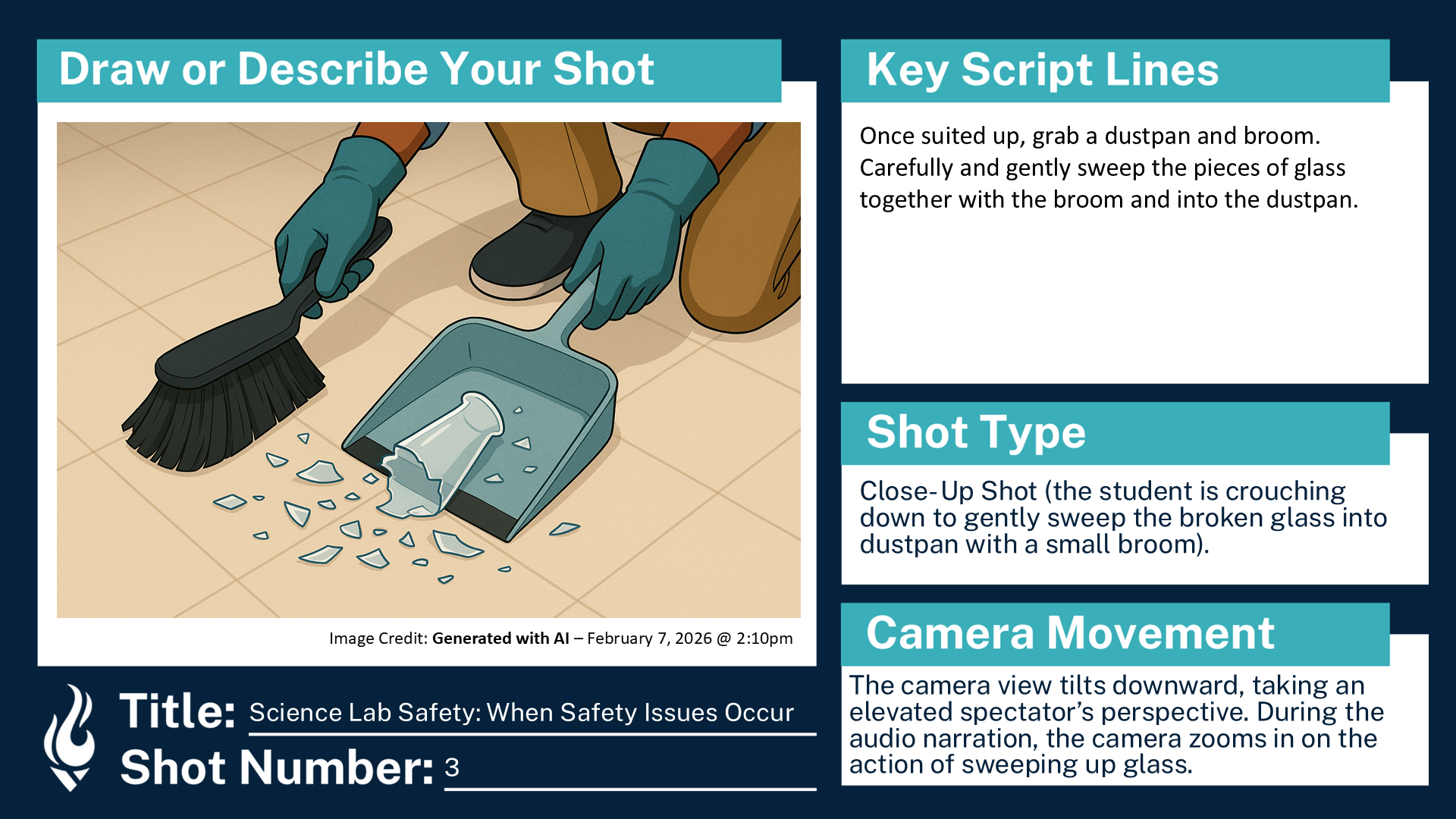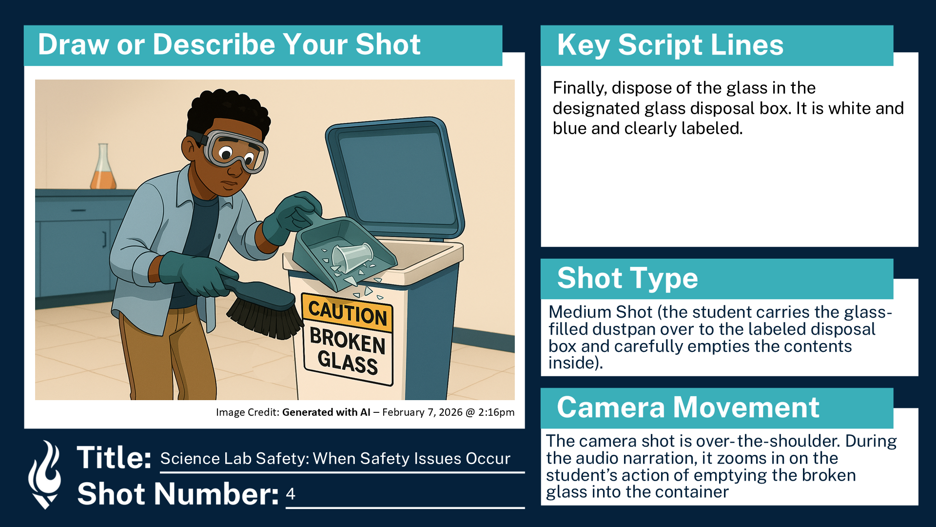 Storyboard for a hypothetical ninth grade course, “Educational Science Lab Safety”